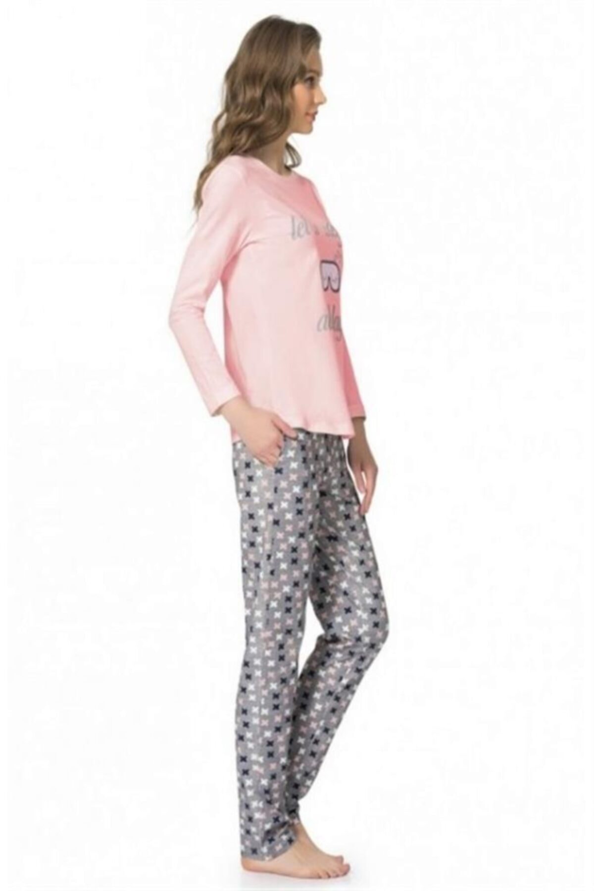 1026 Pamuklu Sıfır Yaka Kışlık Bayan Pijama Takım