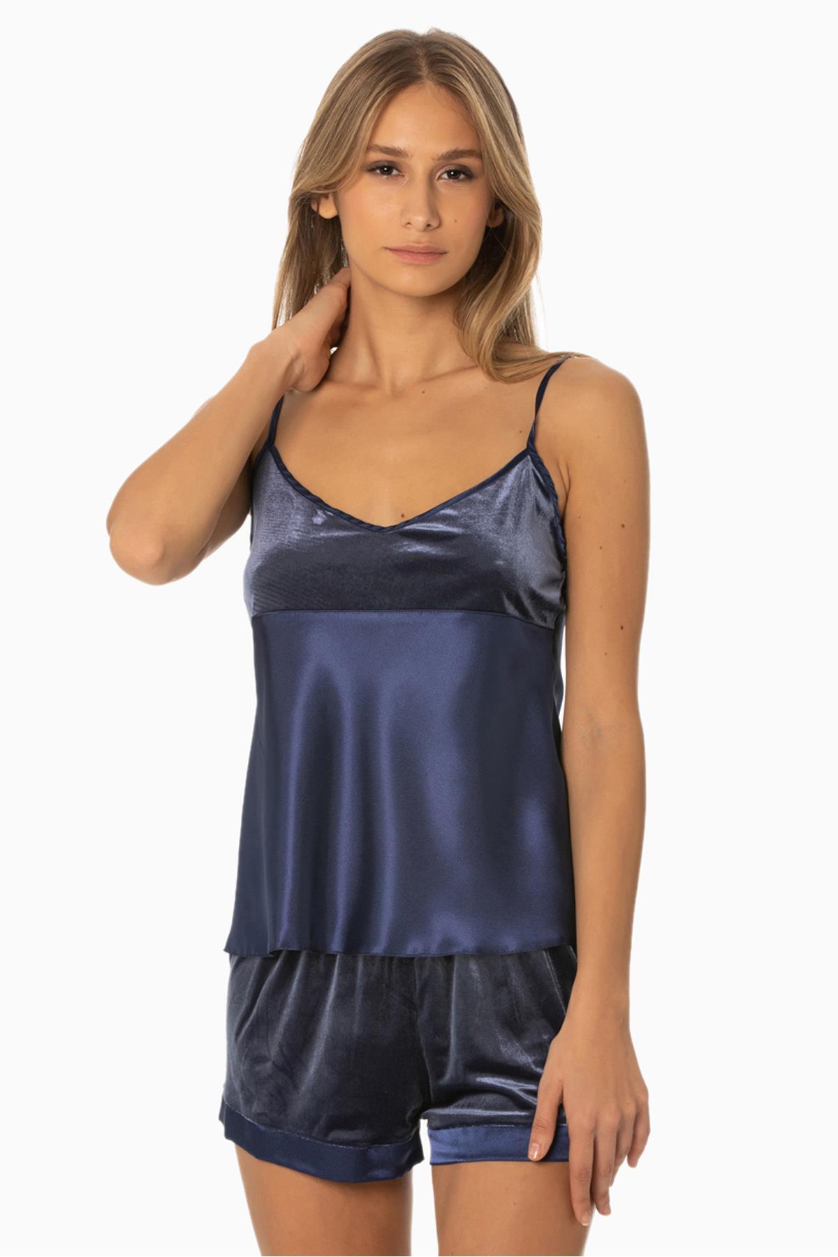 Kadın Kadife Saten Pijama Şort Takım – 440 Royal