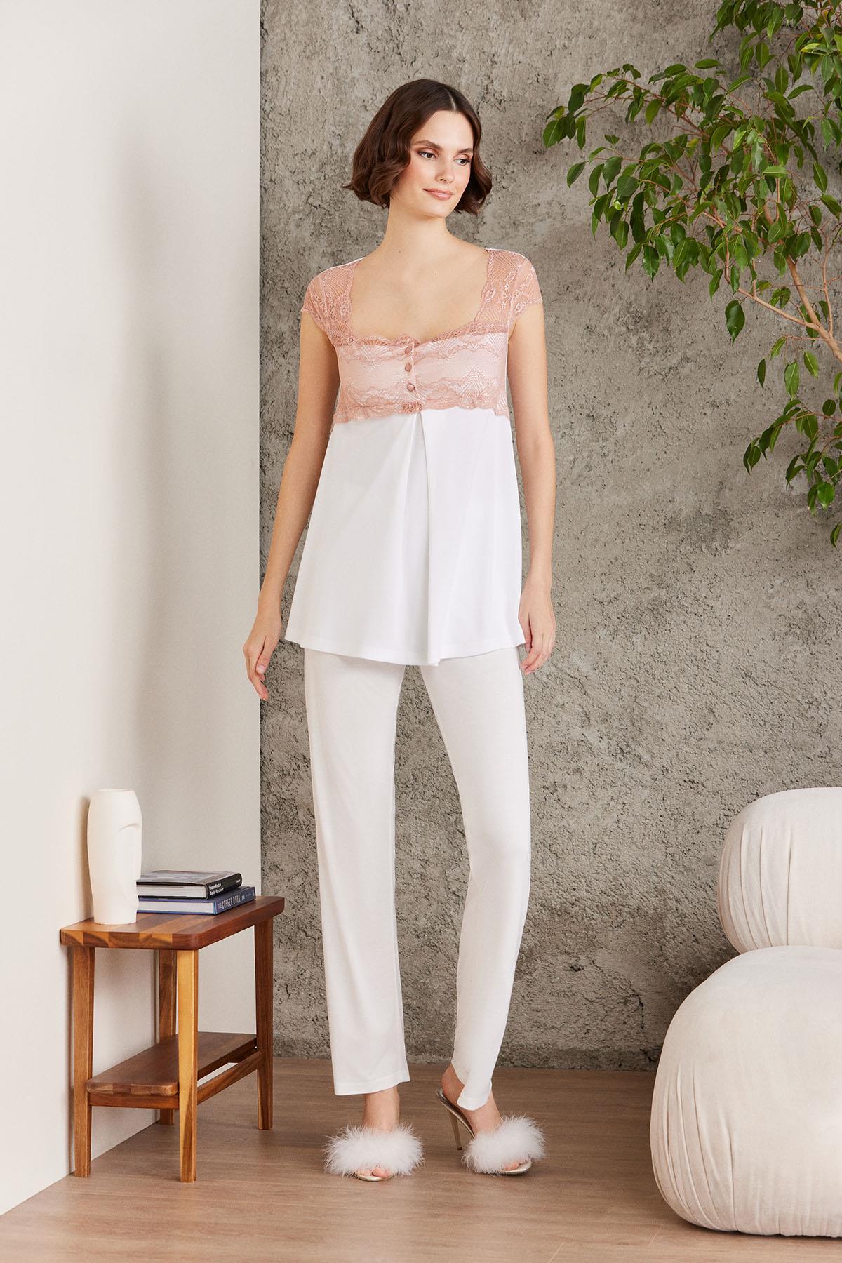 Dantelli Penye 3’lü Lohusa Pijama Takımı – 2805 Brandy