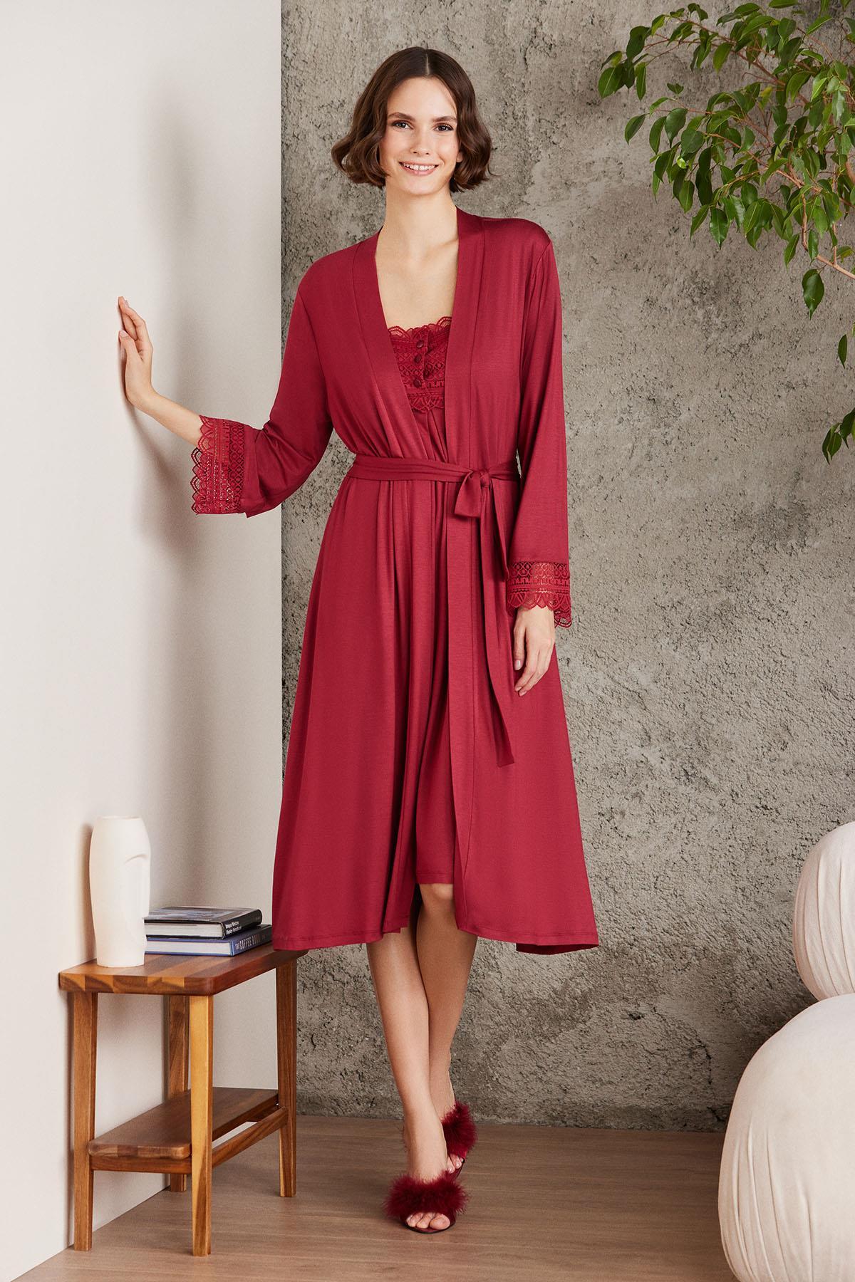 Penye Dantelli Gecelik ve Sabahlık Takım – 2 parçadan oluşmaktadır.; Orijinal kutu içerisinde, birlikte paketlenmiştir.