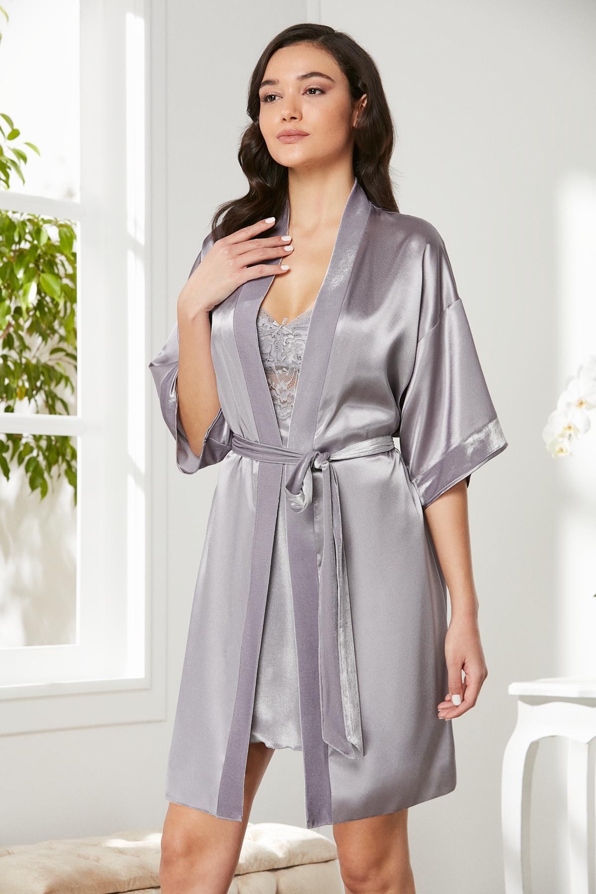 Saten Dantelli Kadın Gecelik Ve Sabahlık Takımı – 4240 Inci