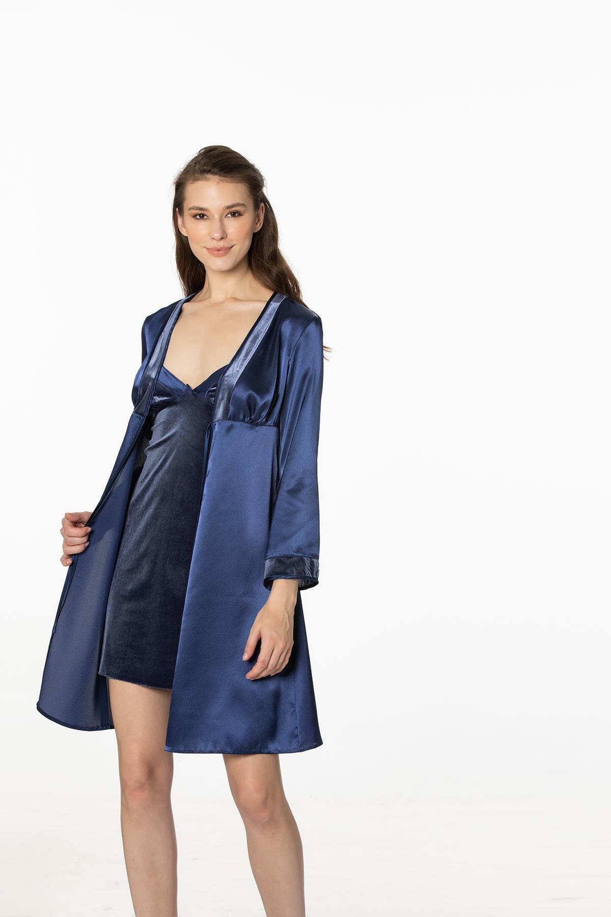 Kadife Saten Gecelik Ve Sabahlık Takımı – 4040