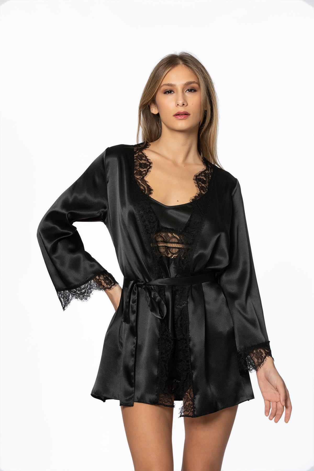 Saten Dantelli 3’lü Şort & Kombi & Sabahlık Takım 3 parçadan oluşmaktadır.; Orijinal kutu içerisinde, birlikte paketlenmiştir.