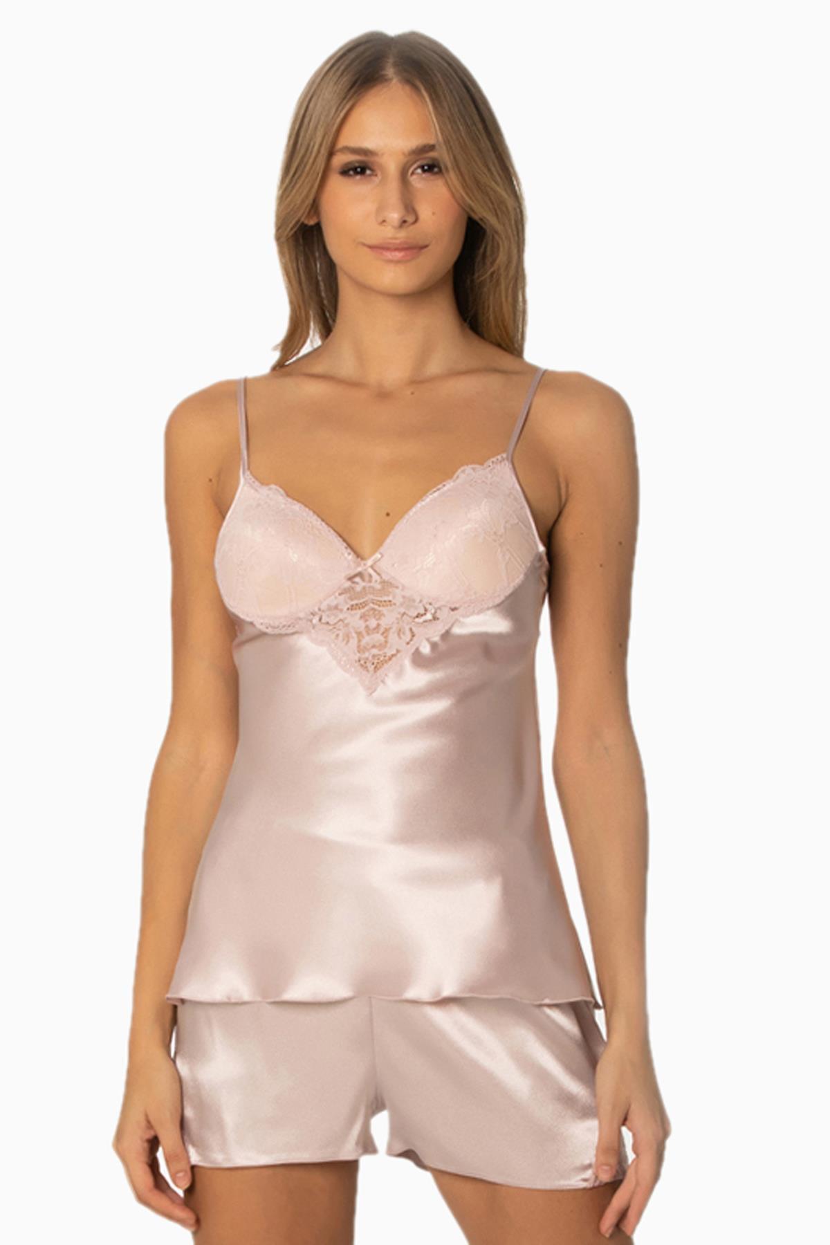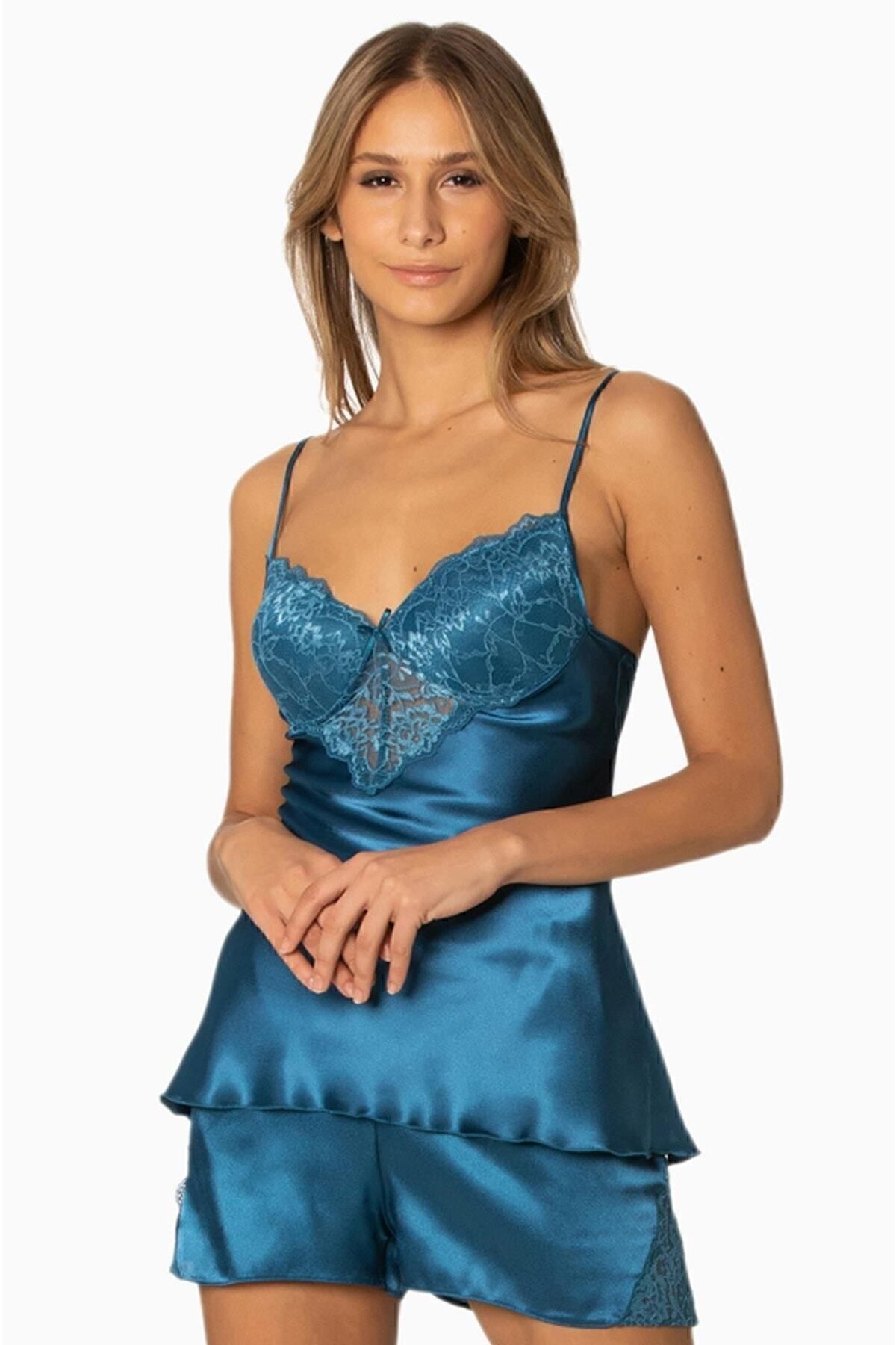 Saten Dantelli Pijama Şort & Kombi Takım – 2 parçadan oluşmaktadır.; Orijinal kutu içerisinde, birlikte paketlenmiştir.